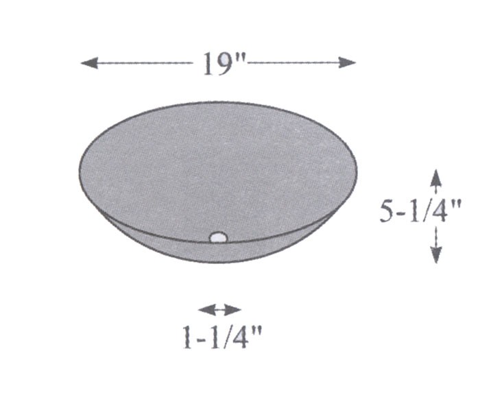 : Catalog number: 30 Height: 5.25 inches Diameter: 19 inches Center Hole: 1.25 inches Fitter: Neckless
