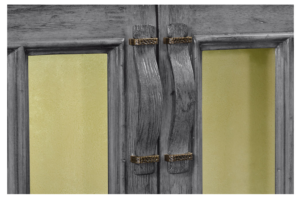 Antique Dark Grey Low Bookcase with Strap Handles