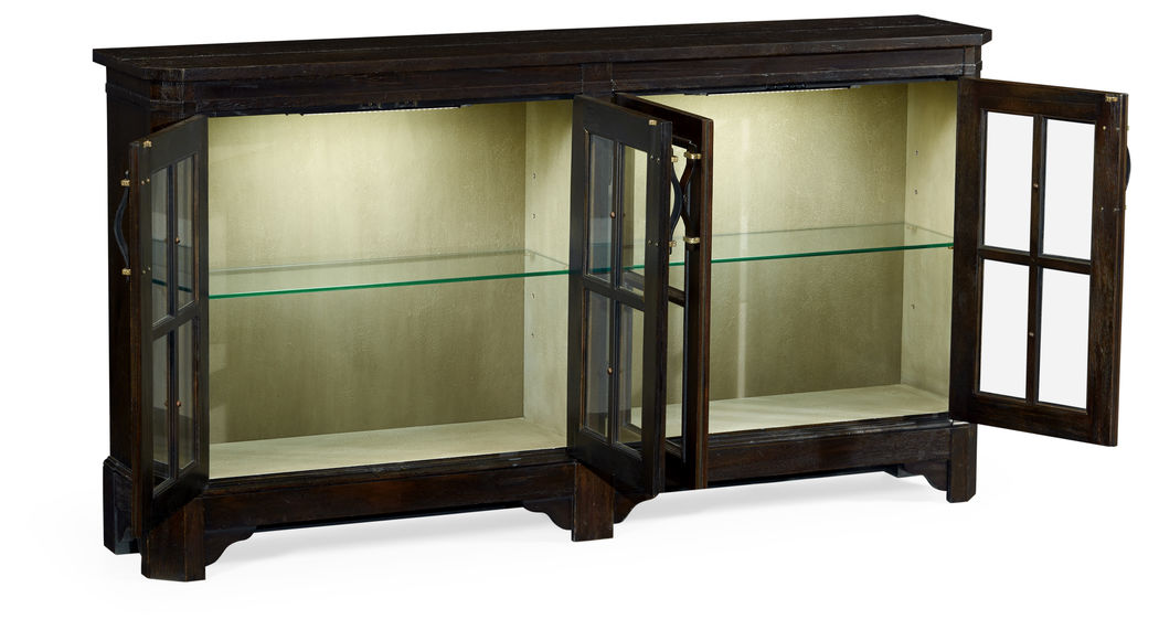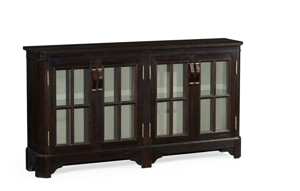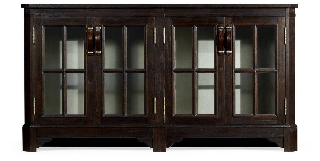491095-PDA Jonathan Charles Dark Ale Parquet Welsh Bookcase with Strap Handles