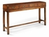 The Jonathan Charles 492062 Table comes in Burr Walnut Medium finish, is from the Special Order Collection and measures 60.04W x 14.96D x 35.04H inches. Campaign console table with four drawers, walnut burr veneers and antiqued brass hardware.