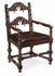 The Jonathan Charles 493162 Chair comes in Tudor Oak Dark Brown finish, is from the Special Order Collection and measures 26.5W x 23.78D x 41.1H inches. This item features a Seat Height 21 inches (53 Cm) Arm Height 28 inches (71 Cm). Heavily carved dark oak armchair in the Elizabethan style with a distressed leather drop-in seat, scrolling arms and bobbin turned legs and stretchers. After an original of c.1600.