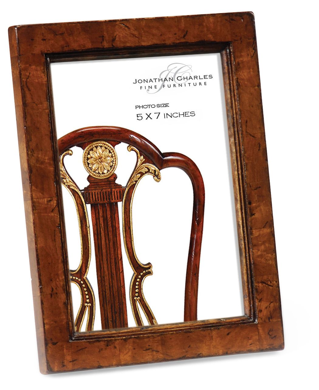 Walnut and decorative crotch walnut veneered picture or photo frame with the whole frame, front and sides, covered in lightly distressed veneers. Presented in a gift box of 6. Suitable for both hanging and standing.