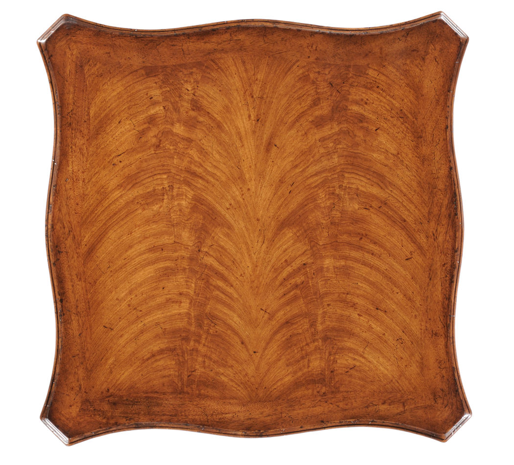 The Jonathan Charles 494045 Table comes in Crotch Walnut Medium finish, is from the Special Order Collection and measures 25.98W x 25.98D x 30H inches. Simple and elegant square topped crotch walnut lamp table with serpentine profile, single drawer with oval brass handle set on cabriole legs.
