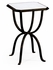 Available in Bronze, Gold & Silver. Contemporary wrought iron small octagonal side table with distressed bronze finish and handpainted gold borders to the silver leaf eglomise glass top. Curved bunched horseshoe legs beneath.
