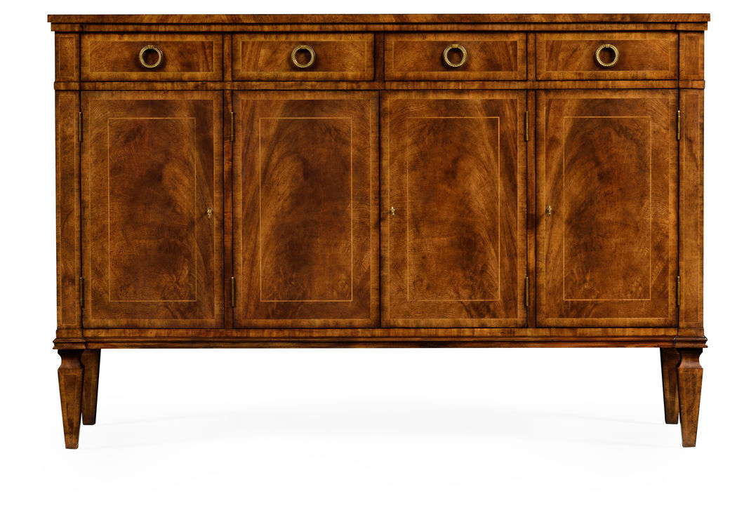 494842-CWM Jonathan Charles Regency style crotch walnut sideboard with four doors