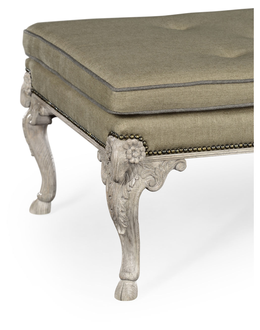 The Tarporley stool with its carved ram leg makes an ideal cocktail table in a grand country drawing room. Pile up the magazines and books, put on the tray of cocktails and perch elegantly while enjoying an evening of classic entertainment