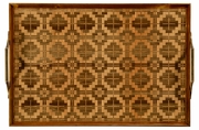 Finely crafted marquetry inlaid oval tray with walnut frame polka dot design and patinated brass handles. (Old salescode: 530151-NPD)