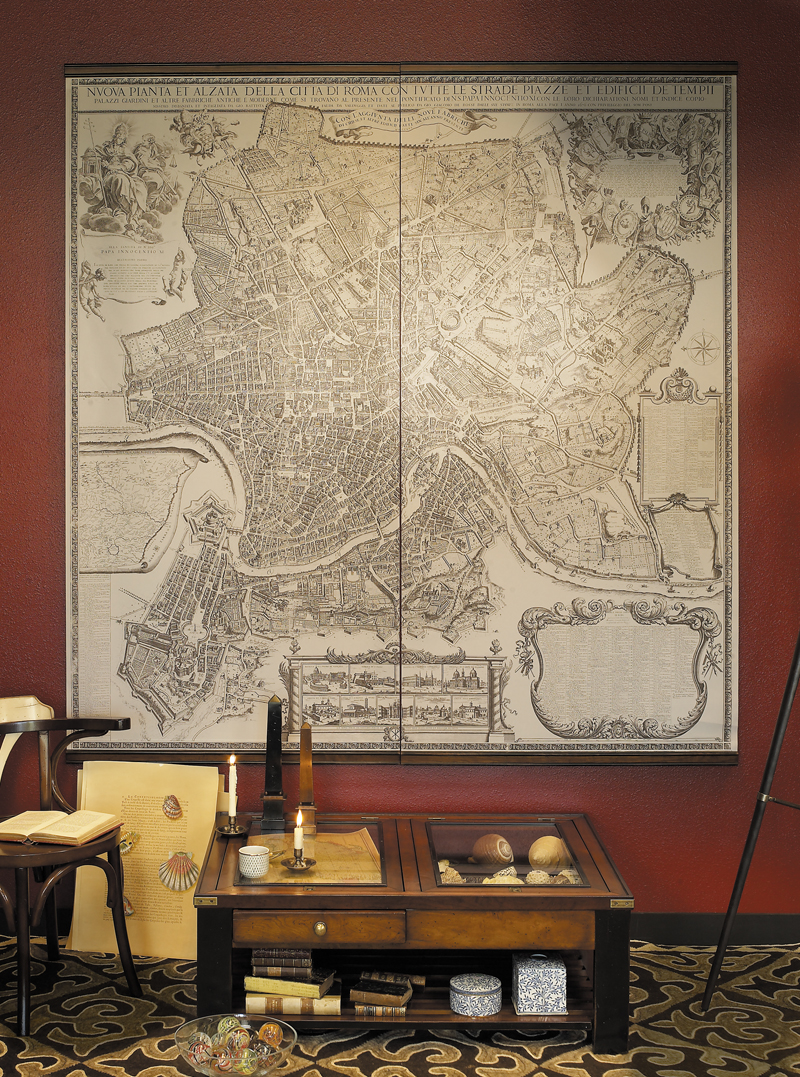 Gallery table available in two color combinations. One shallow space for ephemera such as maps, photos, and posters. One deeper space acts as a mini Kunstkammer. Shells. Instruments. Collectibles. Drawer opens on both sides. Available in deep ruby red, subtly distressed ivory or luxurious black.