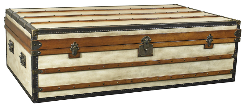 The Small Canvas Covered Polo Club Trunk with Solid Brass Hardware number MF089 by Authentic Models is a part of the Trunk Series Collection and measures 28.1L x 48W x 20.9H inches and weights 86 lbs. and is packaged in vendor box, upc. Luxury on the Go! Once there was a time when porters took care of luggage. Appearing elegant and decorative, an army of trunks were loaded into the baggage car or the ships hold. Royalty and upper-class in the Belle Epoque traveled with specialized trunks. Armoires, bars, libraries, and of course hat-trunks and trunks for the prize-winning poodle. Antique French trunks with famous brand names now catch exorbitant sums at auction. Except for the logo, our trunks are closely inspired by the old, classic travel trunks of yore. Canvas covered. Solid brass hardware. Steamer-varnished hardwood slats. Ideal as coffee tables, combining storage with functionality and design! Every trunk carries two sliding trays painted in signal-red. Roomy and strong, heirlooms for generations to come.