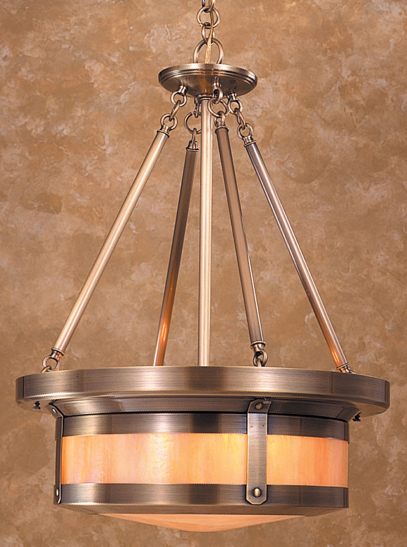 The Arroyo Craftsman BCMH-20 20 inch Berkeley open top pendant with ch-1 chain, measures 19 3/8 inches wide by 26 1/2 inches tall by 62 1/2 inches extension. It is rated for a dry location. It has four 100 watt medium incandescent base sockets. The mounting base is 5 inch diameter meter. This item ships through UPS or FedEx. All ten metal finish options are available. All ten glass options are available.