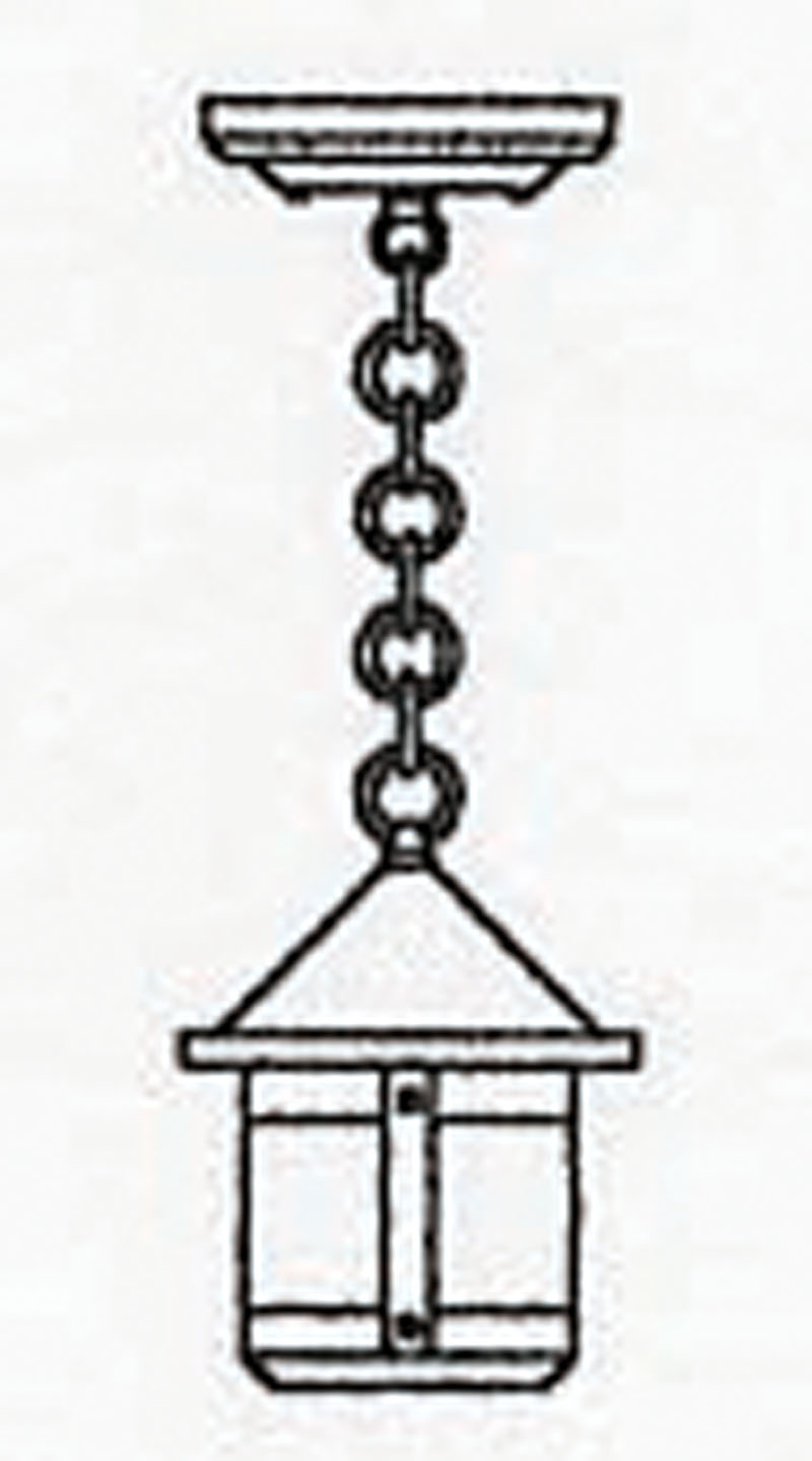 The Arroyo Craftsman BH-6S 6 inch Berkeley short body pendant with ch-1 chain, measures 5 5/8 inches wide by 8 inches tall by 44 inches extension. It is rated for a damp location. It has one 60 watt a15 incandescent base sockets. The mounting base is 5 inch diameter meter. This item ships through UPS or FedEx. All ten metal finish options are available. All ten glass options are available.
