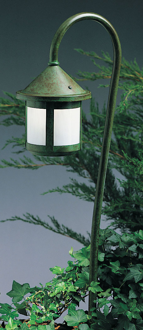 The Arroyo Craftsman LV27-B6S low voltage 6 inch Berkeley short body fixture with 27 inch Bo Peep stem, measures 5 5/8 inches wide by 27 inches tall. It is rated for a wet location. It has one 26 watt low voltage t-5 wedge incandescent base sockets. The mounting base is N/A. This item ships through UPS or FedEx. All ten metal finish options are available. All ten glass options are available.