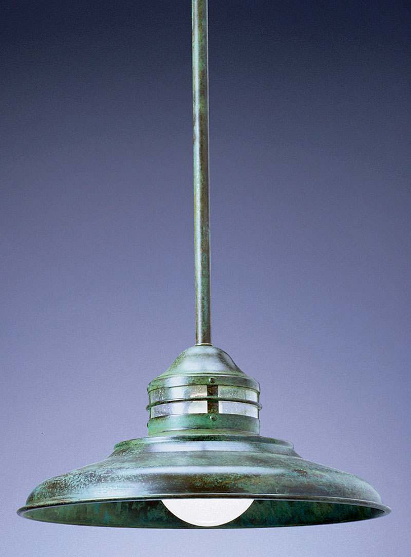 The Arroyo Craftsman NSH-17 17 inch Newport stem mount pendant with 5/8 inch diameter stem, 5 inch diameter canopy, and hang straight swivel, measures 17 inches wide by 8 1/8 inches tall by 32 inches extension. It is rated for a wet location. It has one 100 watt medium incandescent base sockets. The mounting base is 5 inch diameter meter. This item ships through UPS or FedEx. All ten metal finish options are available. All ten glass options are available.