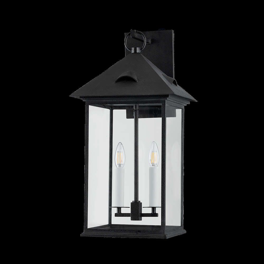Finished in Forged Iron, this classic lantern melds old-world charm with contemporary functionality. The simplified design features four panels of clear glass encasing one or two candles while emphasizing negative space. Rounded roof vent details contribute to the heritage feel of the design. Available in four sizes, Corning suits a number of design styles, from bright cottages to farmhouses and colonial exteriors.