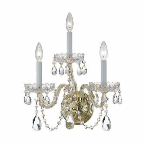 1033-PB-CL-MWP Crystorama Traditional Crystal 3 Light Hand Cut Crystal Polished Brass Sconce