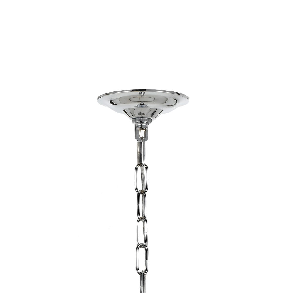 5 Light Chandelier in Polished Chrome has a silver finish with a cooler tone. It has a sleek mirror-like finish and fits most decor styles from vintage to deco and modern to contemporary.