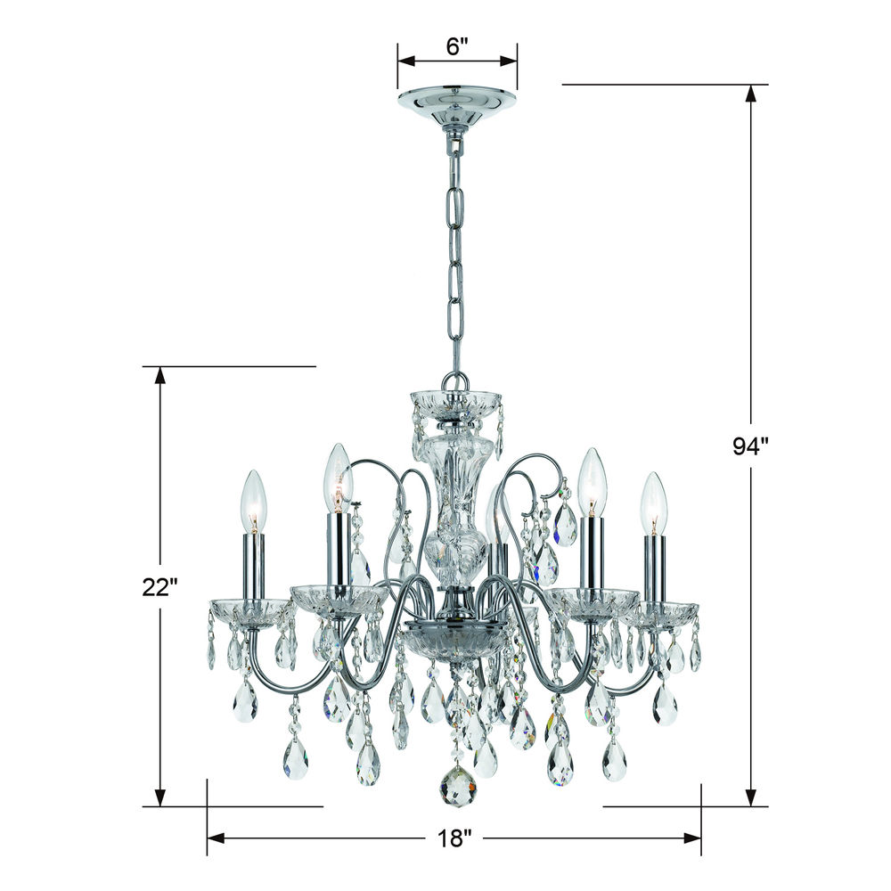 3025-CH-CL-MWP Crystorama Butler 5 Light Hand Cut Crystal Polished Chrome Chandelier
