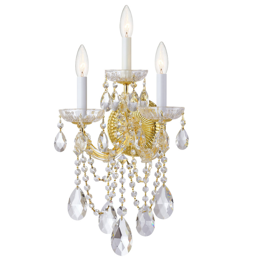 4423-GD-CL-MWP Crystorama Maria Theresa 3 Light Hand Cut Crystal Gold Sconce