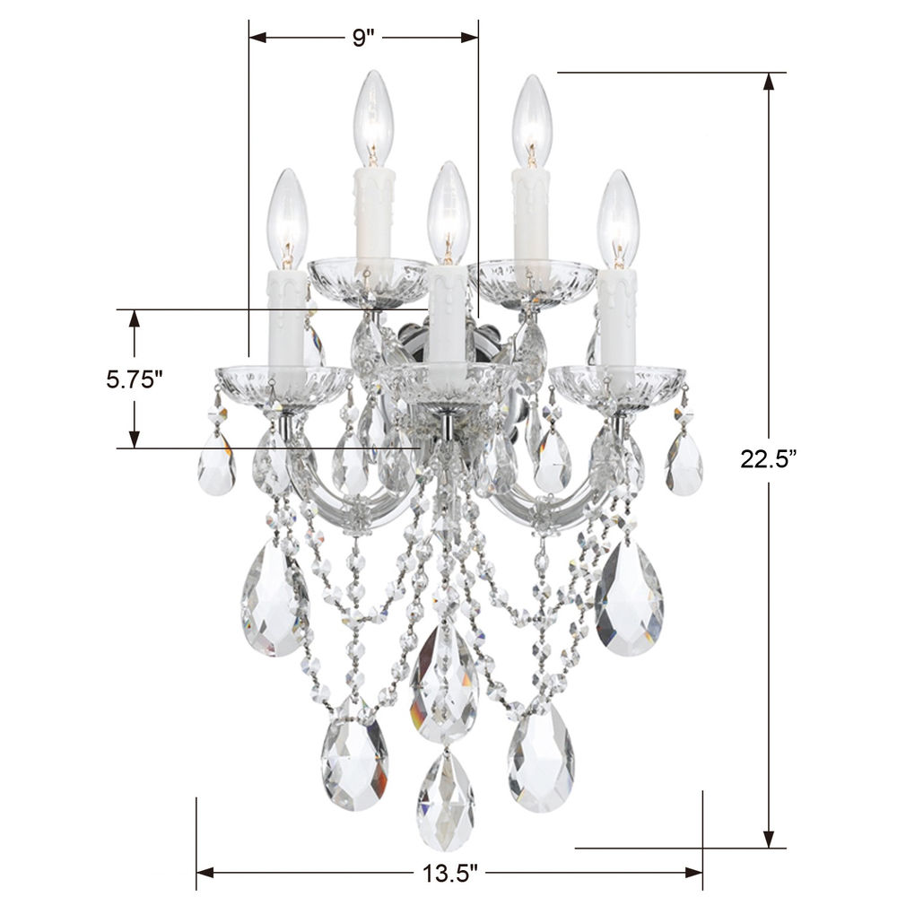 4425-CH-CL-MWP Crystorama Maria Theresa 5 Light Hand Cut Crystal Polished Chrome Sconce
