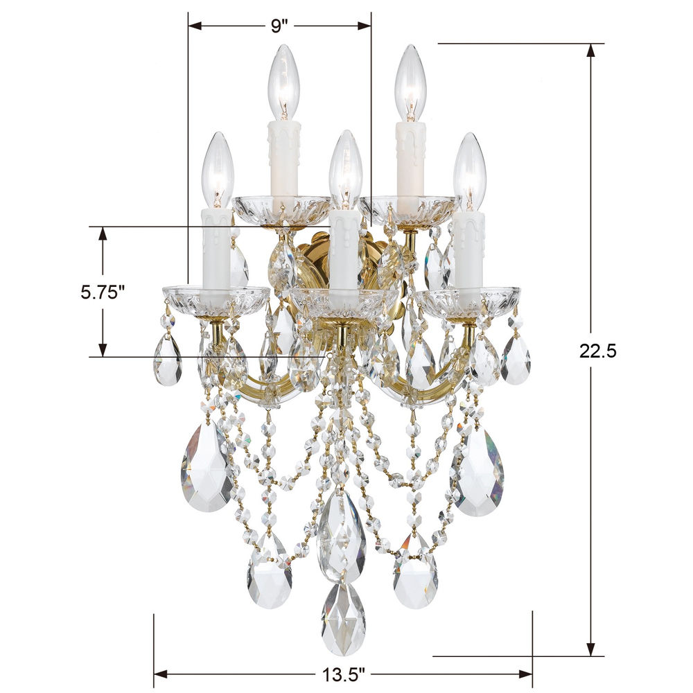 4425-GD-CL-MWP Crystorama Maria Theresa 5 Light Hand Cut Crystal Gold Sconce