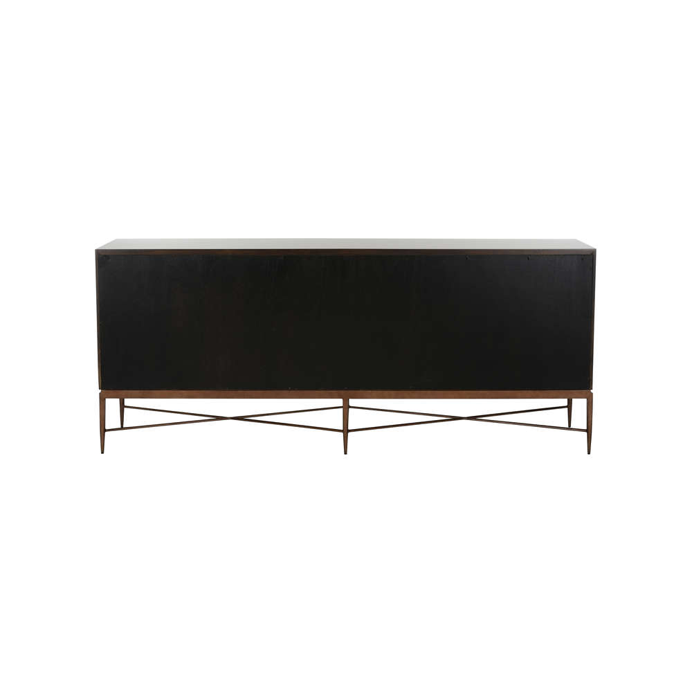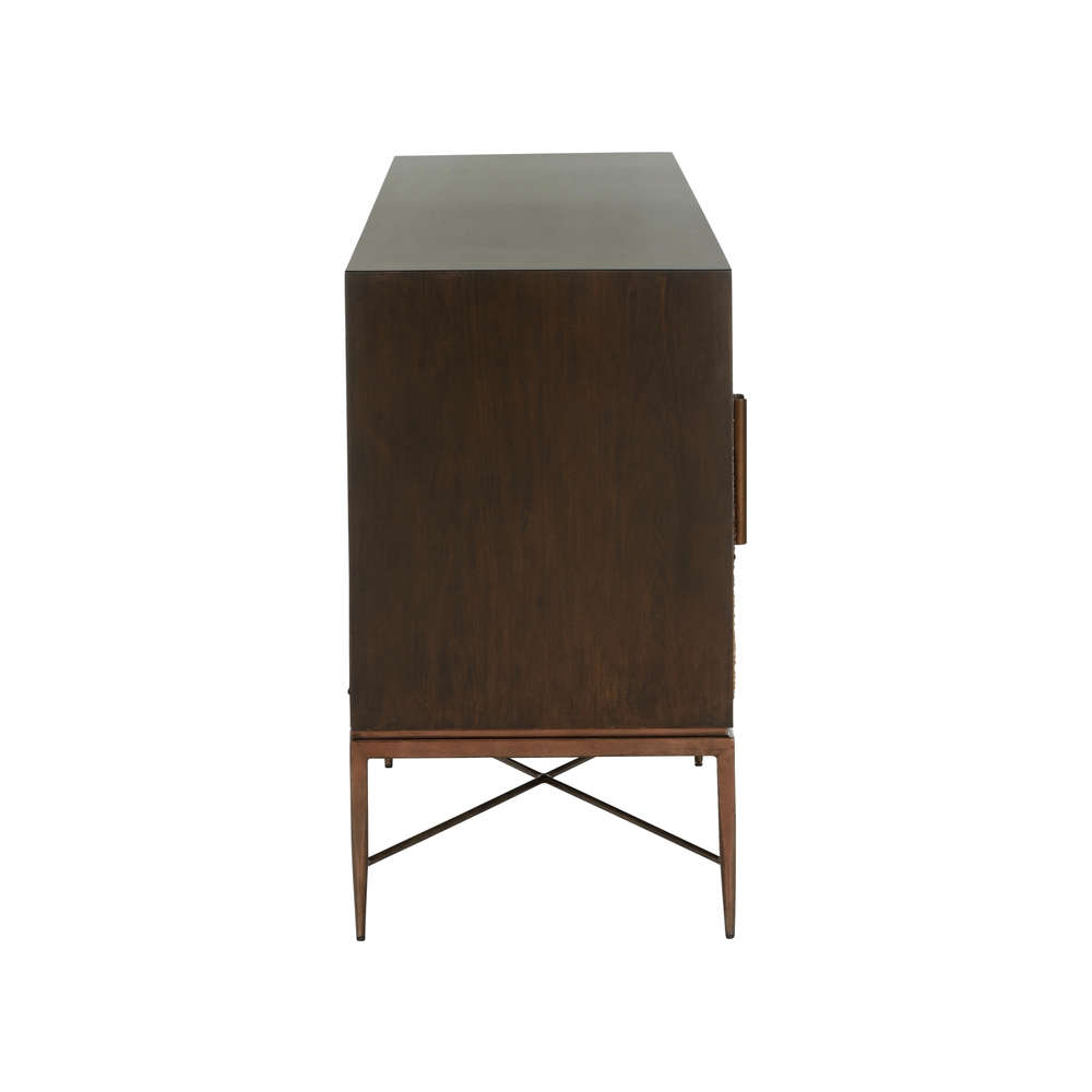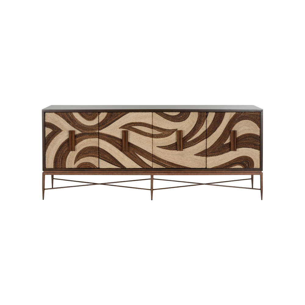 Meticulously crafted with clean lines and mesmerizing swirl pattern of rope, the Williams Console uses wood and rope doors for a dazzling mix of materials. Antique gold details finish off this beautifully modern cabinet. Designed by Bill Cain.