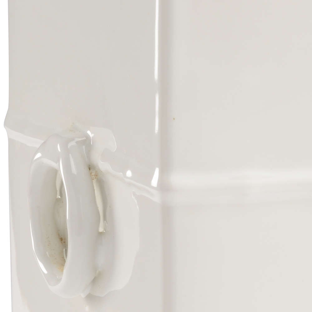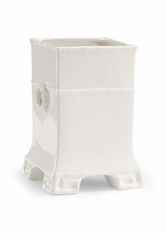 Complement your design style with our Greek Key Vase. This timeless accent is made of an off-white glazed porcelain and features the Greek key design on its feet. This 13.5" square vase is ideal for adding fresh flowers on a console in your entryway, dresser in your bedroom or bookshelf in your living area. With its neutral color and simple lines, the possibilities are endless. Vase opening: 7.25w designed by Bradshaw Orrell.