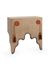 Natural white alabaster with antique gold leaf iron parts. Designed by Bradshaw Orrell.