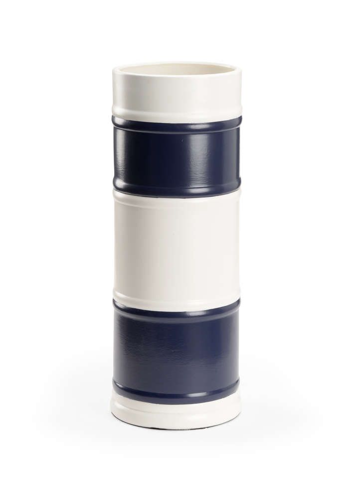 Based on nautical racing flags, this crisp navy and white vase works well alone or paired with its companion Regatta Vases (385040,385042) to form a perfect grouping in modern or coastal interiors. Designed by Jamie Merida.