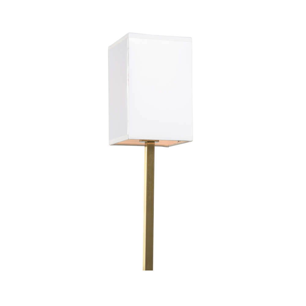 Understated and tasteful for any room, the Discreet Lamp has an effortless modern gold stem that sits atop a clear acrylic base, crowned with a rectangular white shade. Designed by Jamie Merida.
