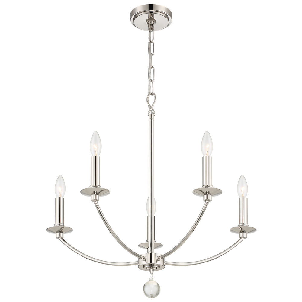 5 Light Chandelier in Polished Nickel metal finish, perfect for modern & contemporary settings.