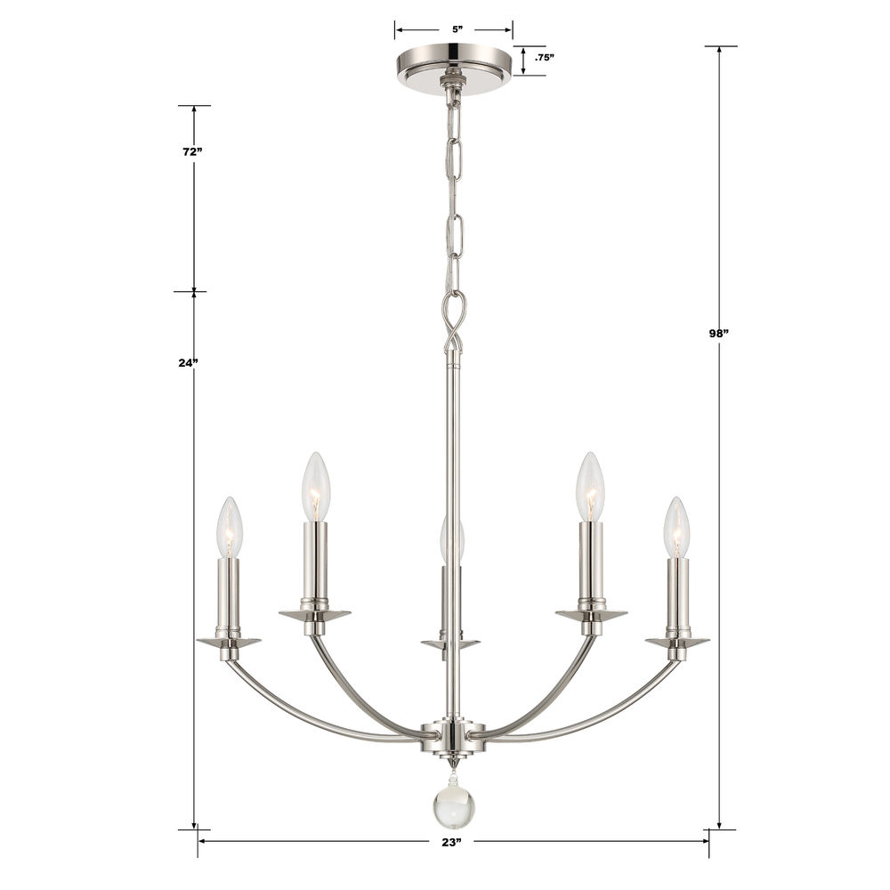 MIL-8005-PN Crystorama Mila 5 Light Polished Nickel Chandelier
