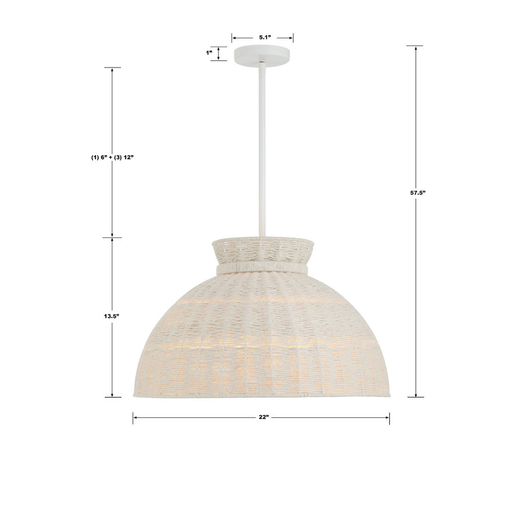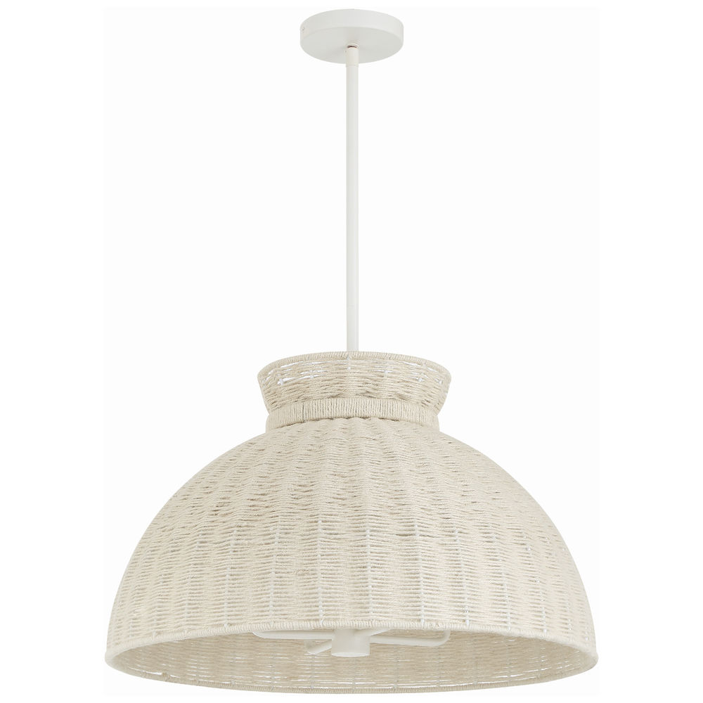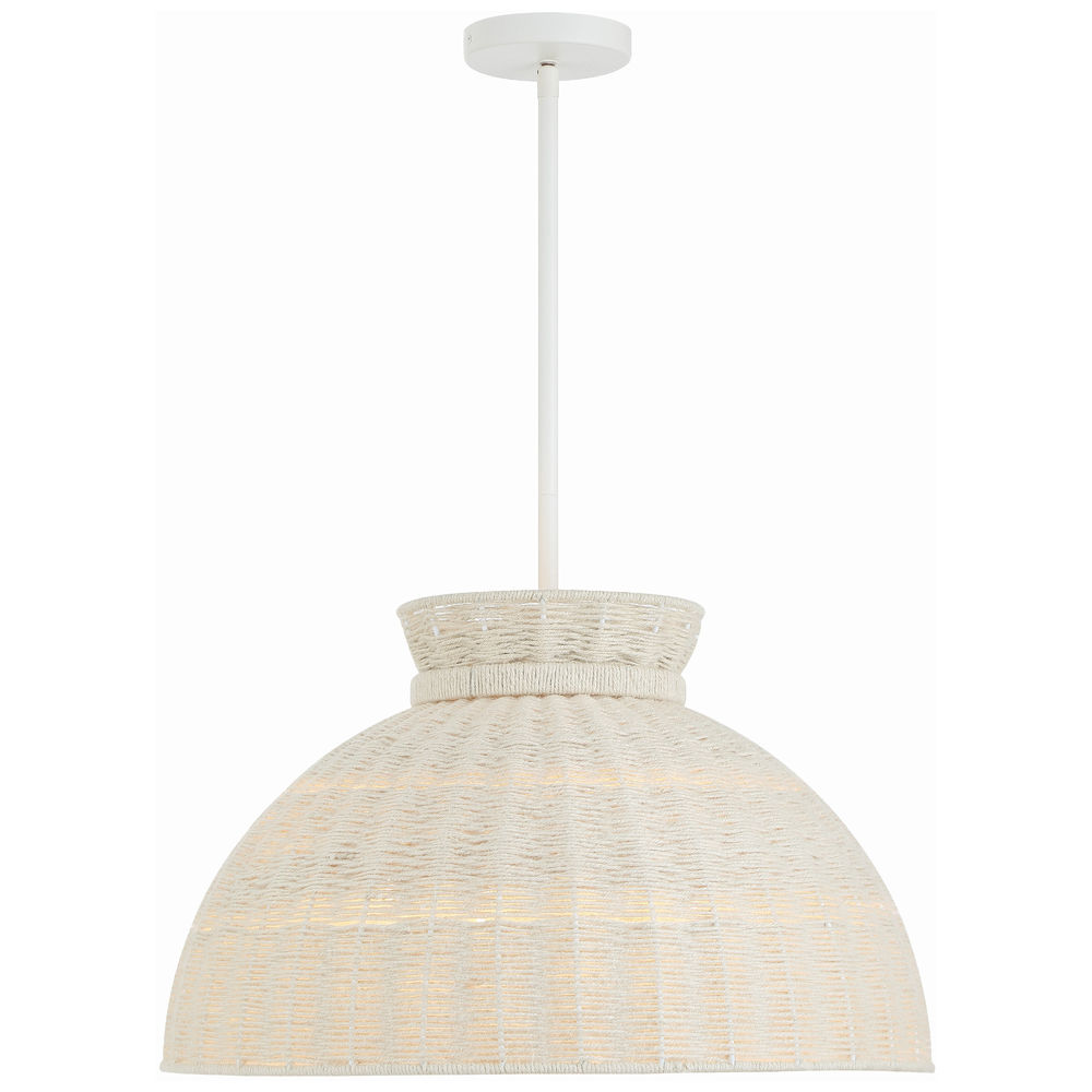 Add instant style to your surroundings with the Reese pendant. Hand-woven with Natural Bleached jute around a Matte White frame, this bright and vibrant fixture will lighten up a room without overpowering it. Its versatile finish and textural character have a soothing and laid-back vibe that will bring a space to life. A perfect choice for a breakfast nook or hung in pairs over a kitchen island.