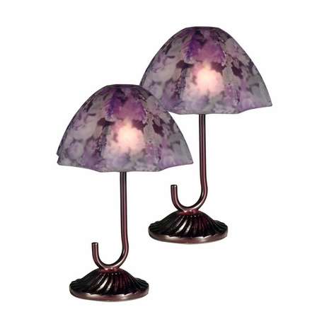 The ethereal beauty of our Purple Umbrella Votive holder will enhance any decor style in your lovely home. The shade is lovingly crafted by hand in lavender purple art glass. A lovely floral motif in complementary colors has been hand painted in reverse on the inside. The delicate colors of the shade will suffuse a gentle glow when a lighted votive candle is placed within the holder. The shade sits on a gracefully curved pole atop a gently domed pedestal that is cast with a reeded style. A lovely gift for the candle enthusiast or the special woman in your life, our Purple Umbrella Votive Holder will be a cherished keepsake that will be enjoyed for many years to come.