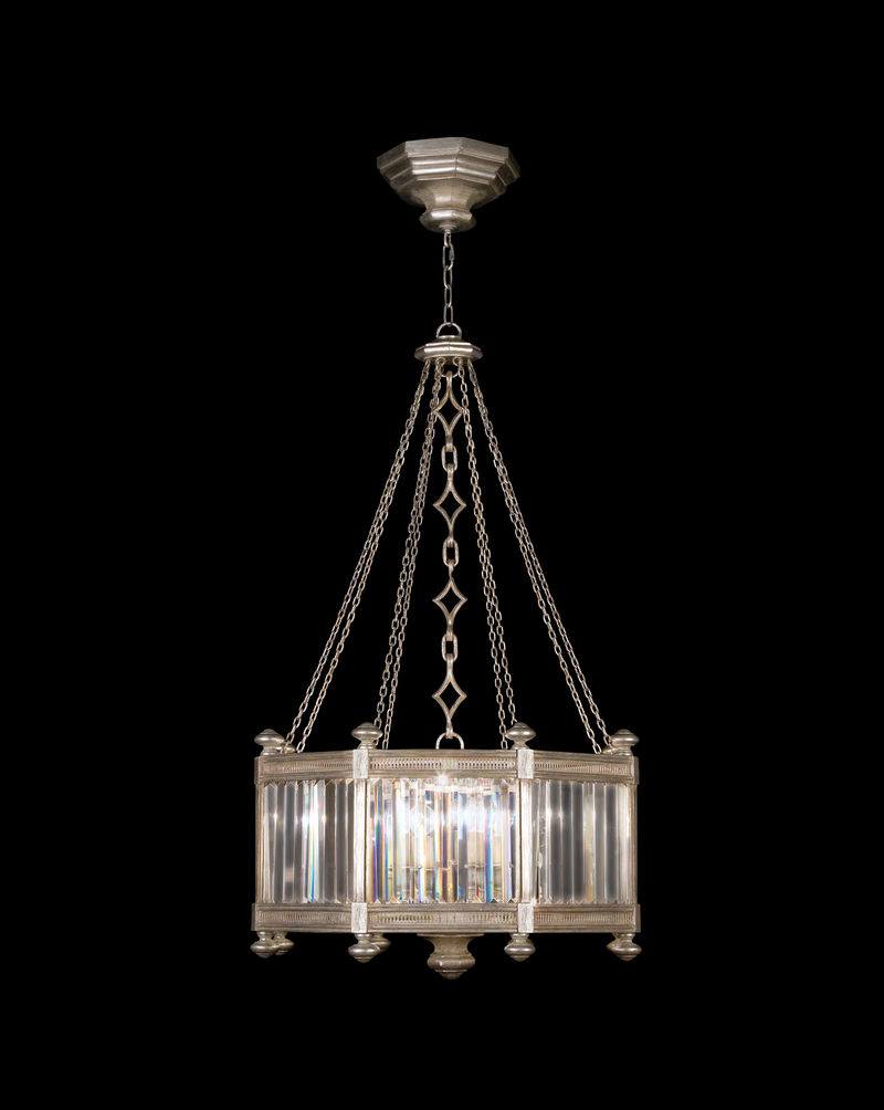 The Fine Art Lamps 584440-2ST pendant is from the Eaton Place Silver collection and measures 45H x 25W inches. It uses (8) 60 watt candelabra base bulbs. The socket type is phenolic. This pendant weighs 82 pounds. For international 220 Volt application, the 584440-2ST pendant measures 114.3H x 63.5W cm. It uses (8) 60 watt candelabra base bulbs. The socket type is phenolic. This pendant weighs 37.27 kilograms. Pendant in a warm muted silver leaf finish featuring faceted channel set crystal.