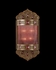 Sconce of Meticulously Crafted Metalwork in An Aged Dark Bronze Finish. Hand-Blown Glass in Vibrant Sunset Red Color.