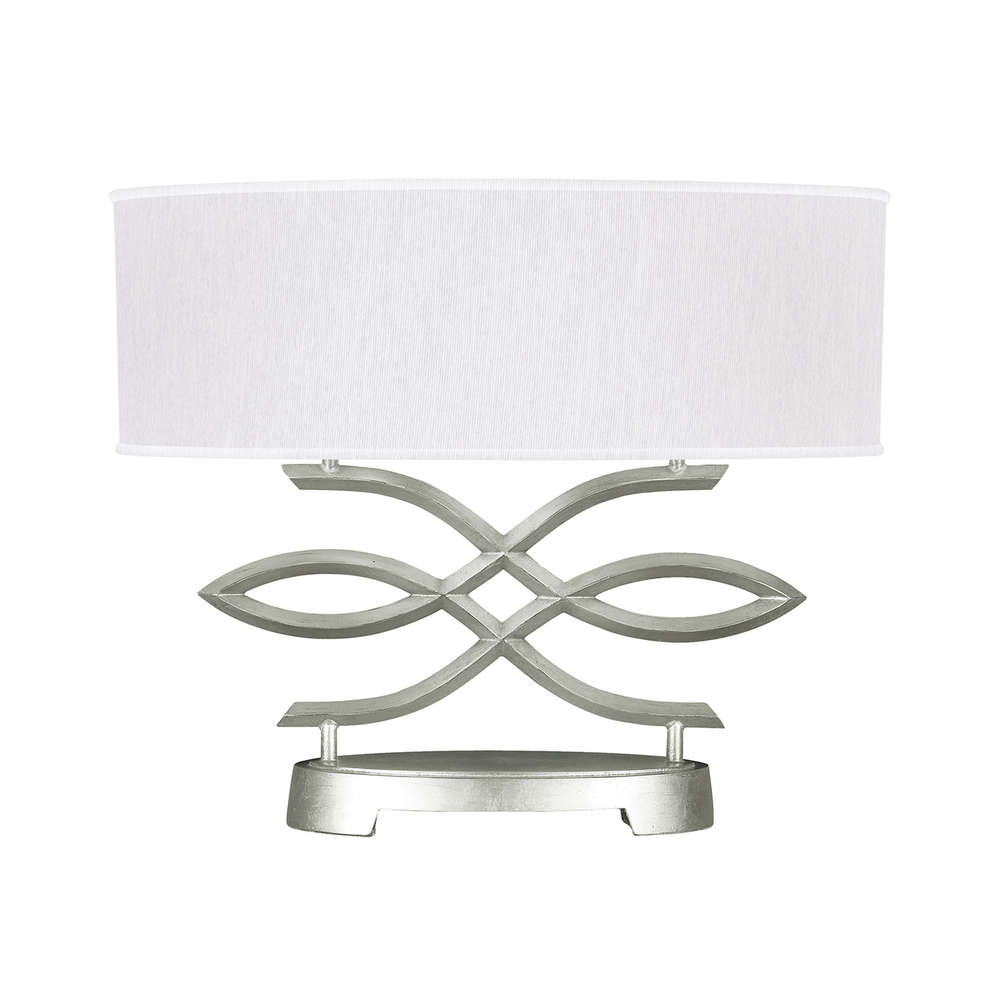 Table lamp in a gold leaf finish with champagne fabric shade. Allegretto 21" Table Lamp.