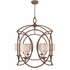 Executed by skilled metal artisans, this antique bronze chandelier is inspired by the 1920Ős unique transitional period in architecture & design in Cienfuegos. Also available in soft gold or weathered greige patina. Includes textured natural greige fabric shades.