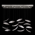 Elevate raises your environment to new heights. Each "plume" is handblown and sculpted with a translucent mixture of clear crystal and white glass. Illuminated from a silver leaf canopy and suspended by adjustable cables, this Made in America rectangular fixture features 15 handblown glass "plume"s and is ideal for low ceilings. Shown in a ÒhorizontalÓ design.