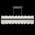 Rectangular LED pendant influenced by the ephemeral appearance of illuminated rock crystal, which has been interpreted into handmade glassworks with the collaboration of the Fine Art studio glass master craftsmen. Formed of glass spires that mimic natural crystal formations as much as they do rays of sunlight, and clean metal lines in unadorned but precious finishes. Available in silver leaf, gold leaf or patinated bronze.