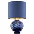 Our Dichro Collage lamp is a work of art. A trend setting innovative design born in our Miami Glass studio features a unique multi-color collage of luminescent abstract patterns with gold leaf accents. Created by fusing layers of dichroic glass into a blown vessel and cased in heavy clear crystal. Shown in cobalt with beige fabric shade. Also available in amber, black and ruby with coordinating or neutral fabric shades. SoBe 20" Table Lamp.