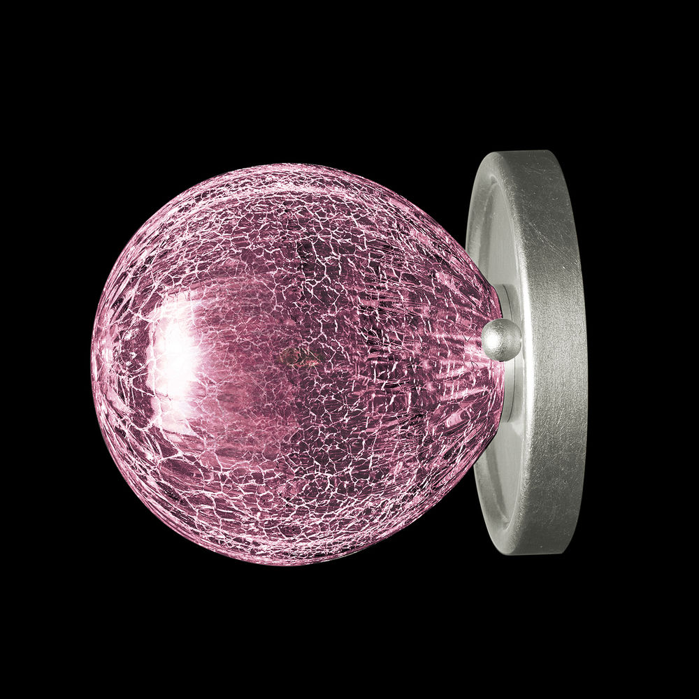 Pendant featuring two hand-blown glass forms nesting in brilliant light. The outer sphere is blown in thick clear crystal with a high polished cut edge conveying the optic quality of our handmade studio glass. Nesting inside like a gem, is the inner ball that surrounds the light source, illuminating in one of eight available jewel tones. Inner glass color can be mixed or matched. Contact Customer Service for ordering information. Metalwork available in silver leaf with polished nickel accents or gold leaf with brushed brass accents. Nest 8" Round Drop Light.