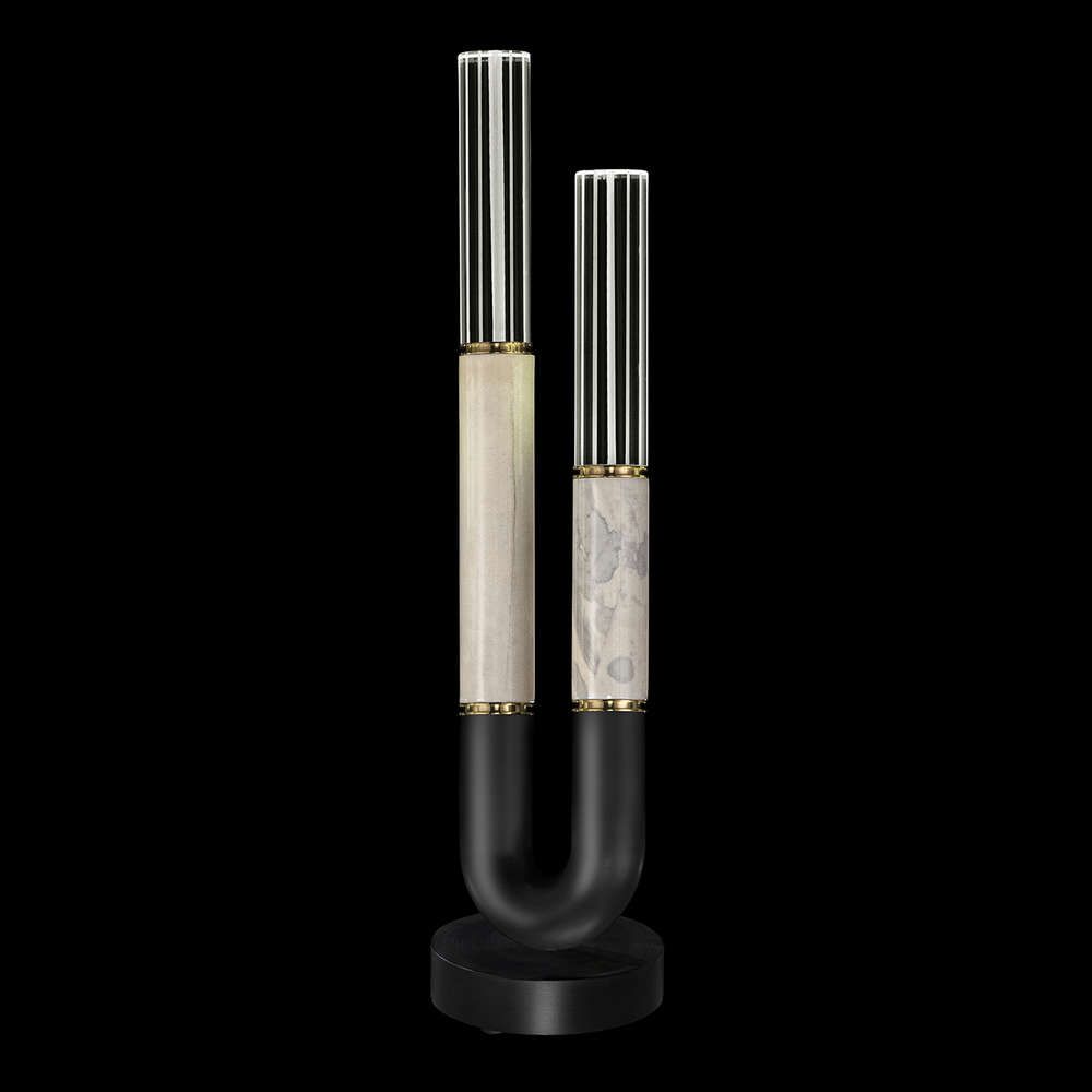 Table lamp featuring soft curves and the inclusion of metals carefully handcrafted to transition from parchment to magnificent glass, culminating in a stunning beam of light. Available in a wide range of exquisite finishes, including our five standard finishes and our newest Soft Ombre Bronze & Soft Ombre Silver, with the choice of two parchment colors, Charcoal and Smoke. Also available with no parchment.