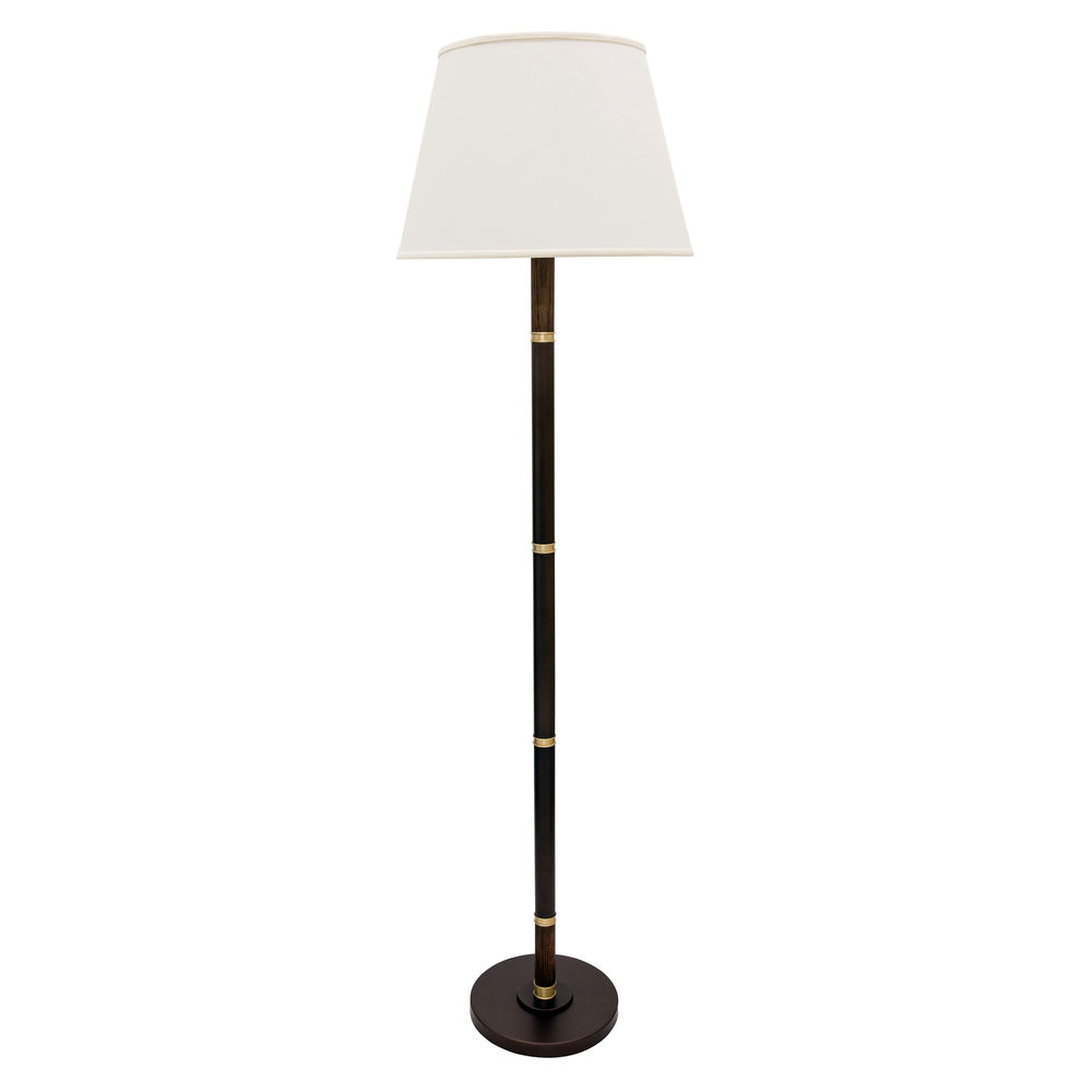 Stained oak and satin brass accents add richness to this handsome lamp.