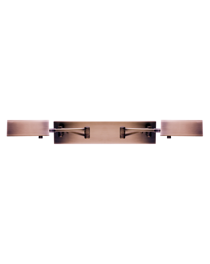 The PIN475-2-AB Antique Brass Double Wall Lamp uses 2 (50WGU10 Halogen) bulbs that are included. it extends 23.75 inches and it's backplate or base is 4.25 x 18 inches. The switch is located full range dimmer. This Wall Swing comes in Antique Brass, weighs 10 pounds, and is made in US. This item can be Title 20 compliant by purchasing the Title 20 compliant bulb with purchase for and additional $