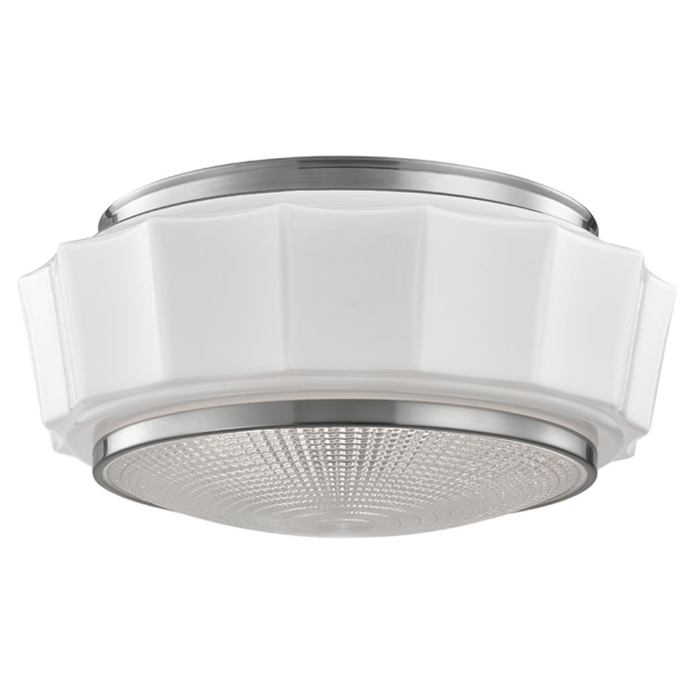 As population swelled, early twentieth century America saw a rapid expansion of public spaces. Savvy developers gained the edge with standout lighting designs bright symbols of technology and progress. Showcasing a multi-faceted shade of glossy, mouth-blown opal triplex glass and a prismatic down-light diffuser, Odessa brings the eye-catching innovations of a bygone era to your current standout space.
