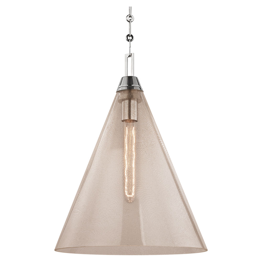 Model number 6014 (1) light Pendant comes with several finish options and requires (1) T10 bulb. The dimensions for the 6014 are 19H x 14 Dia. inches. With the Hudson Valley Lighting Warm Modern style this item belongs to the Newbury Collection and is imported. It usually ships in 2-3 business days with UPS.