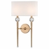 Topped by a soft-white fabric shade, the tapered wand of the Rockland sconce showcases the glamour of shining crystal orbs. While the Polished Nickel finish projects a mirror-like shine, its warm tone complements the shade's soft hue.