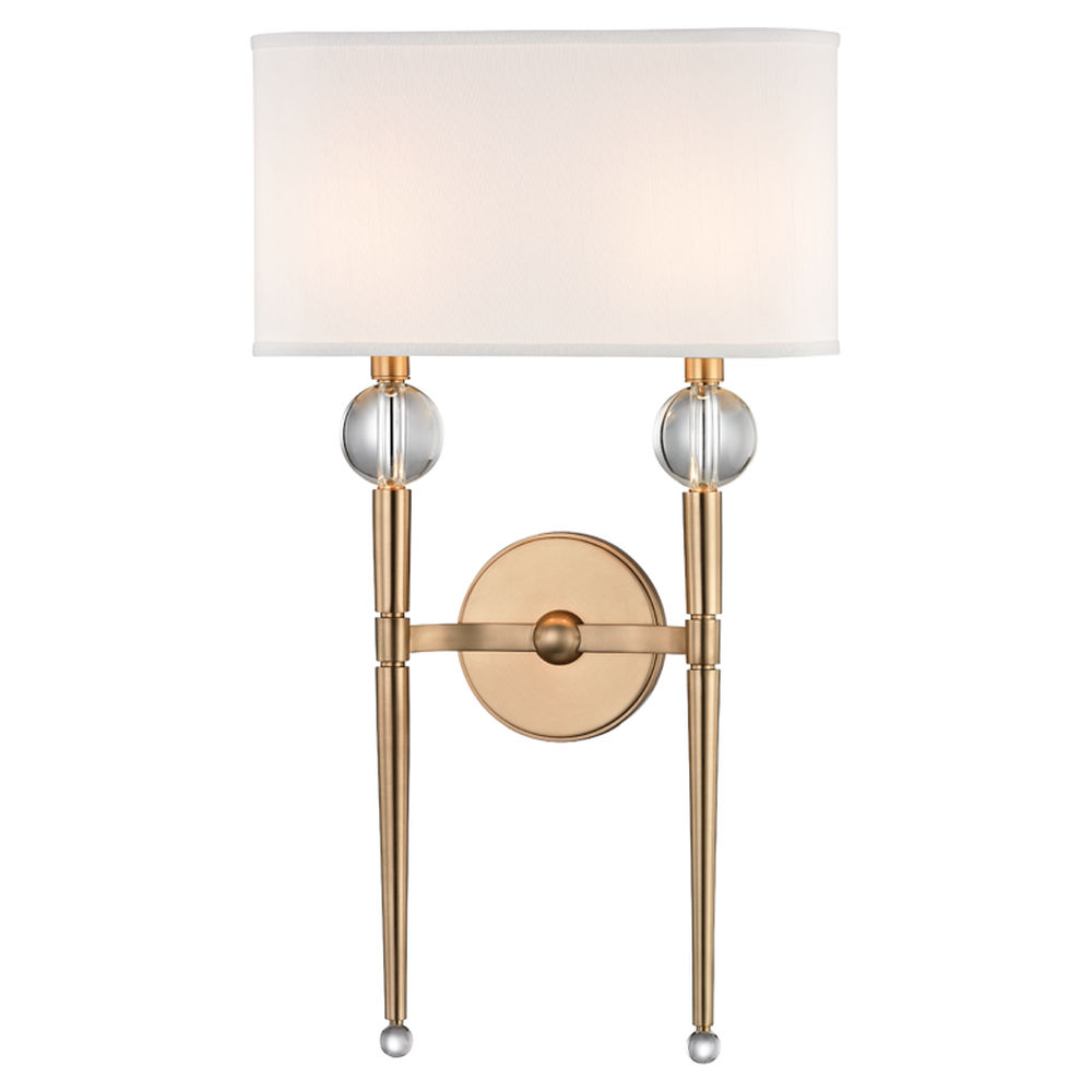 Model 8422 (2) light Wall Sconce by Hudson Valley Lighting is 21 inches in height. With a Bold & Glamorous style it belongs to the Rockland Collection. It has (2) 60 watt candelabra sockets. The bulb is not included. This item is Imported and ships by Ups.