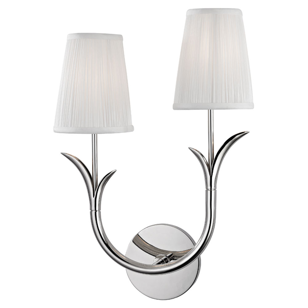 Deering's arm imitates new life growing on a stem, reminding us that hope springs eternal. Fine details and silk pleated shades add to this sconce's immediate impression of elegance and grace. Nature's unassailable design sense meets machined precision for an endearing fixture.