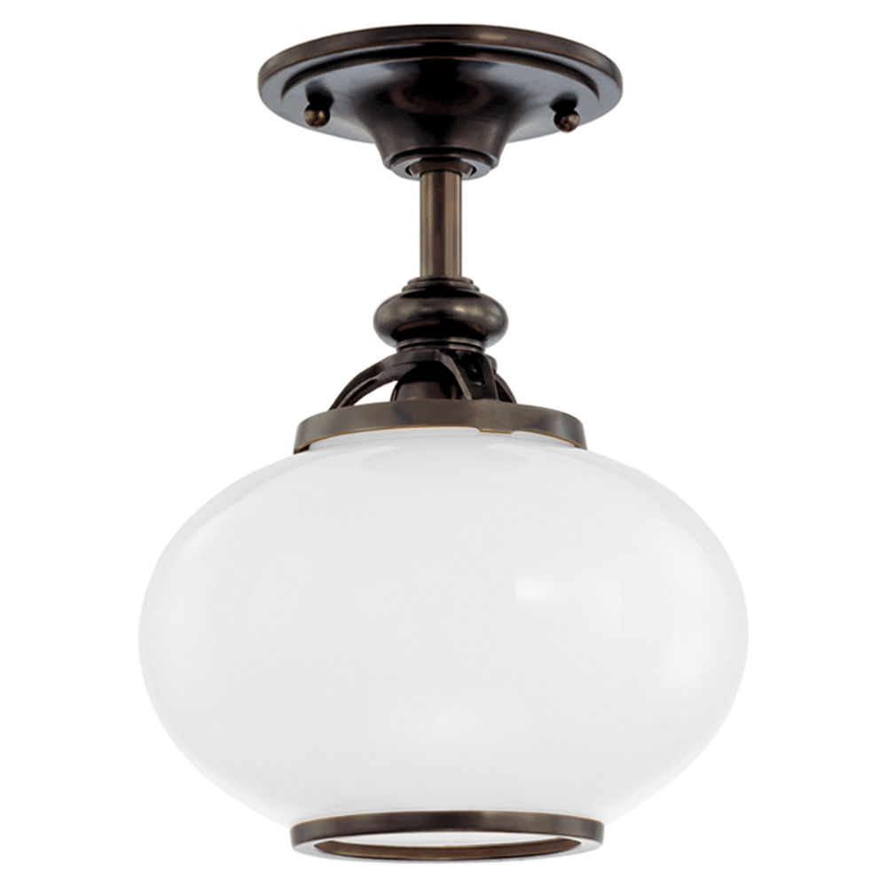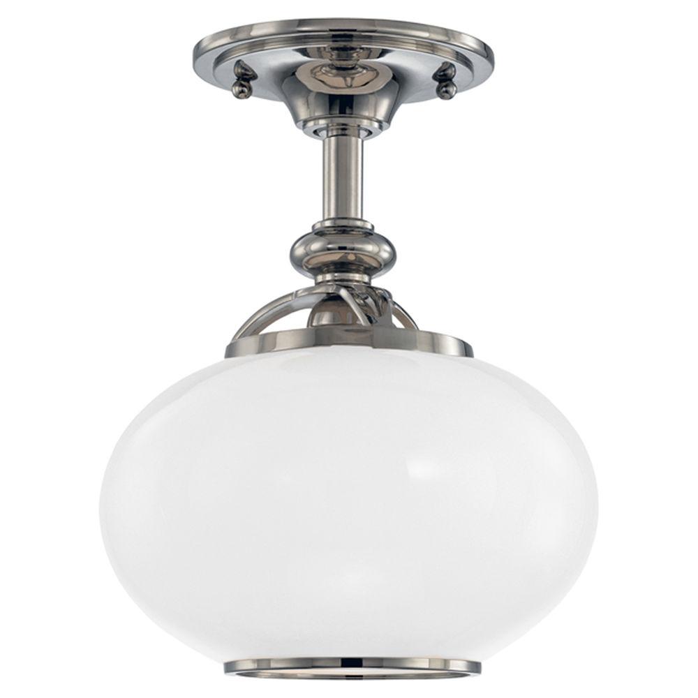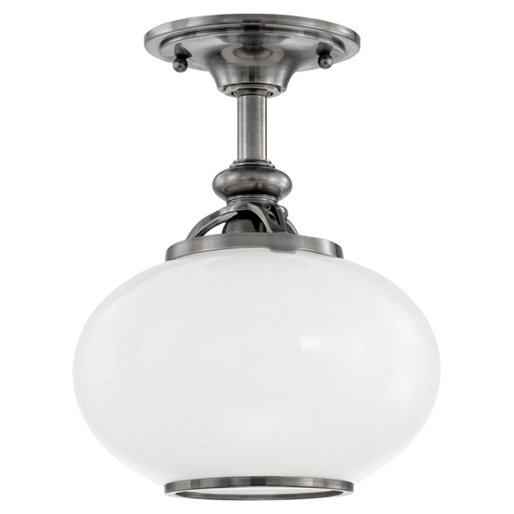 Model 9809F (1) light Semi Flush by Hudson Valley Lighting is 11.5 inches in height. With a Chic Vintage & Industrial style it belongs to the Canton Collection. It has (1) 100 watt a19 medium base socket. The bulb is not included. This item is Imported and ships by Ups.